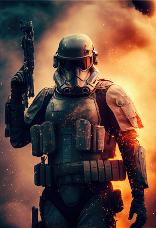 Portrait of a sci-fi military warrior. High-tech futuristic man from the future. Generative AI Art.