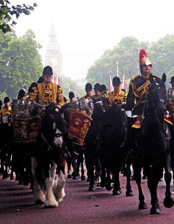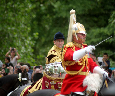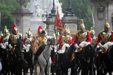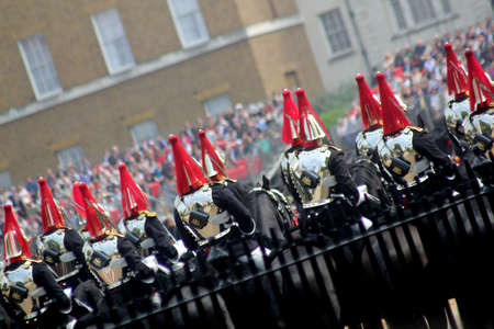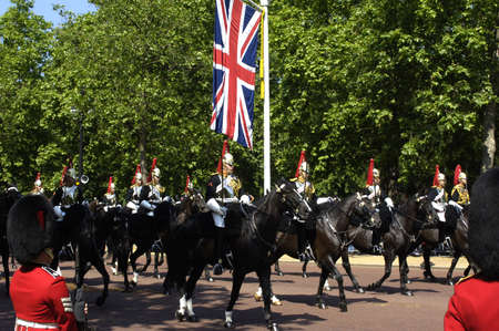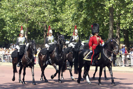 London, UK - June 15, 2013: The parade, Household Cavalrys present, marching at Queen's Birthday Parade. Queen's Birthday Parade take place to Celebrate Queen's Official Birthday in every June in London.