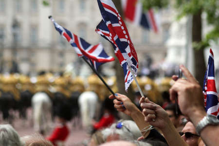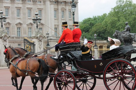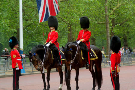 LONDON, UK - June 16: Trooping the Colour ceremony on the Mall and at Buckingham Palace, on June 16, 2012 in London. Trooping the Colour takes place every year in June to officialy celebrate the sovereign birthday.