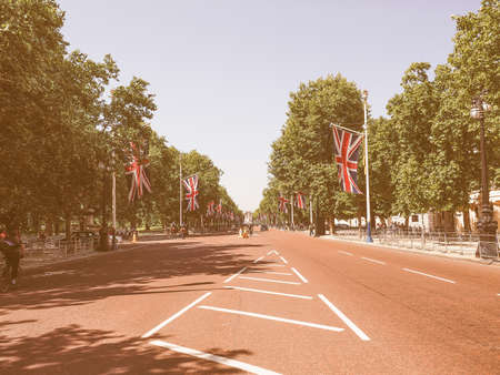 LONDON, UK - JUNE 11, 2015: The Mall links Trafalgar Square to Buckingham Palace vintage