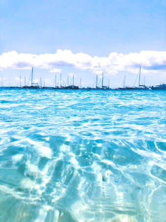 Sailing boats docked in transparent blue water