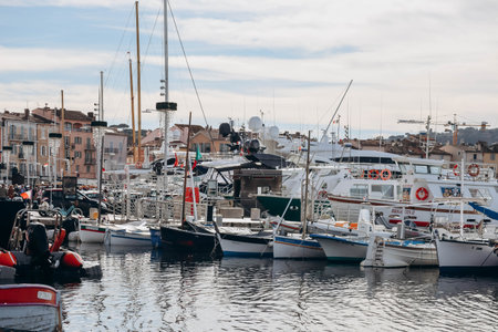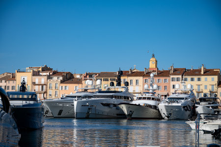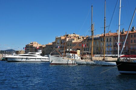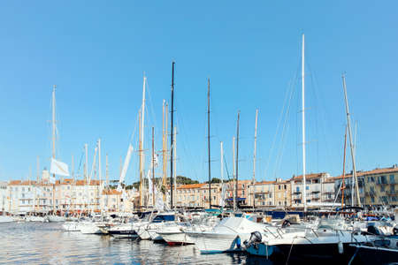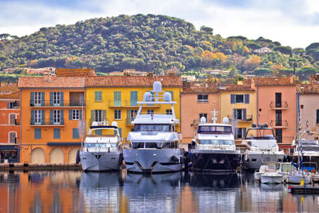 Colorful harbor of Saint Tropez at Cote d Azur view, Alpes-Maritimes department in southern France