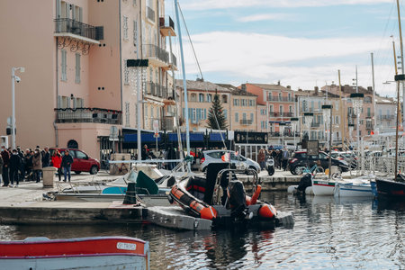 Saint-Tropez, France - June 11, 2019 : Saint-Tropez is a town on the French Riviera. It is a resort for the European and American jet set and tourists.