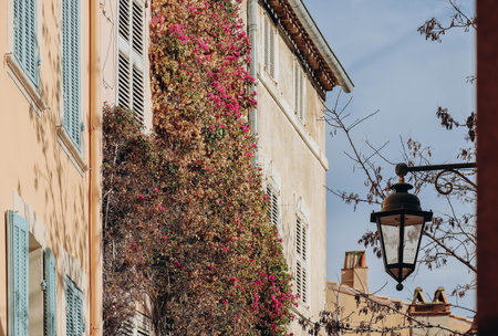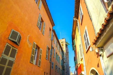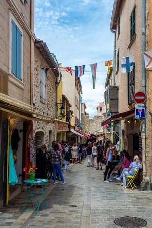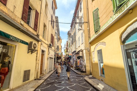 Antibes, France - June 27, 2016: day view of Rue du Dr Rostan street in Antibes, France. Antibes is a popular seaside town in the heart of the Cote d'Azur.