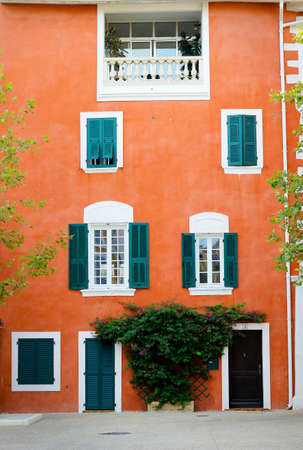 facade of mediterranean building with colorful shutter