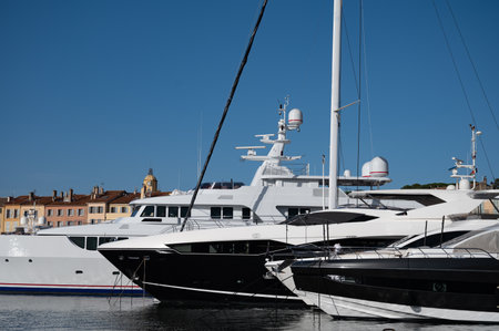 Luxury boats docked in St. Tropez in French Riviera