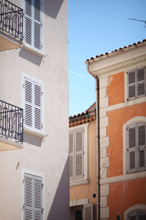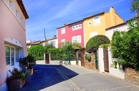 Saint Tropez, Old city street view with colorful houses, Côte d'Azur. France, Europe