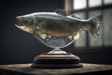 Fishing trophy. Cup with fish on a stand, digital illustration painting, Generative AI