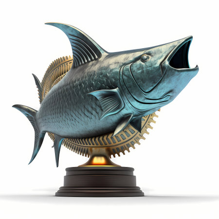 big fish trophy isolated on white background with clipping path. 3d illustration