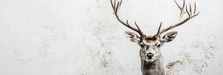 Majestic deer stands with impressive antlers in a serene setting, creating an inviting atmosphere with ample copy space.