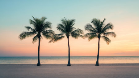 Palm trees on the beach at sunset. Beautiful tropical landscape.