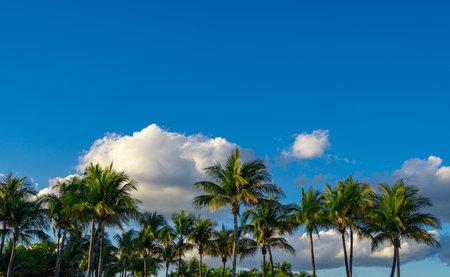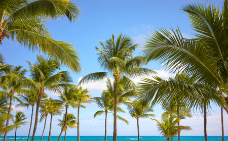 Coconut palm trees in Pompano Beach shore on a sunny day