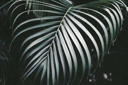 Close-up shot of tropci palm leaf. Nature backround, dark toned photo
