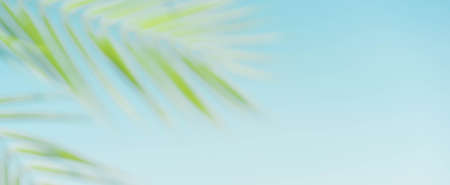 Image of tropical green palm over blue pastel background