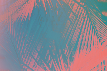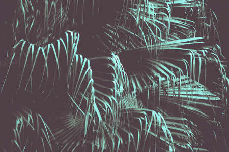 trendy design, nature and background concept blue duotone palm tree leaves