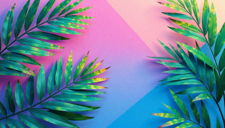 Palm leaves against vibrant gradient background evokes tropical vibe