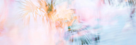 Blurred colorful coconut palm trees frame Pastel retro color Gradient light colourful nature background
