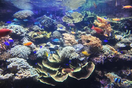 Aquarium with tropical fishes and corals. Aquarium with colorful fish.