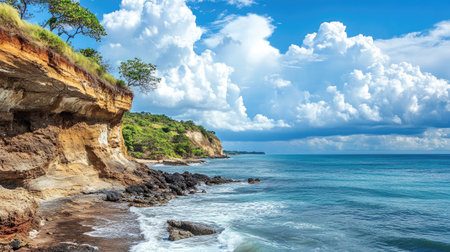 Discover a breathtaking coastal landscape featuring dramatic cliffs and vibrant turquoise waters. The scene captures the essence of nature's beauty and tranquility.