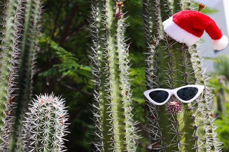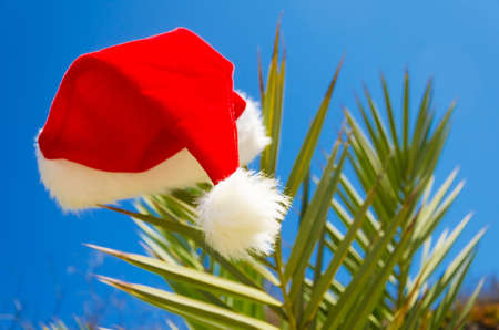Christmas hat on palm tree - holiday concept