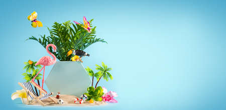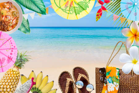Colorful tropical summer background, travel industry concept, summer decoration with beautiful beach background