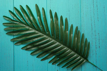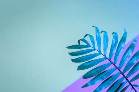 Fiji fan palm on blue background. Copy space