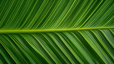 A detailed macro shot reveals the intricate veins and vibrant green hues of a palm leaf. The natural pattern creates a sense of organic beauty and tranquility.