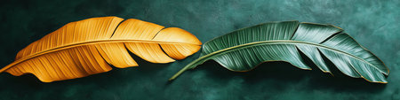 Exotic Golden Yellow And Bright Green Tropical Leaves Arranged On A Textured Background