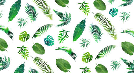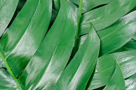 Nature background with green tropical palm leaves. Summer forest or jungle pattern. Flat lat.