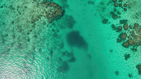 Shallow water corals in Tropical climate. Blur View on water surface. Andaman sea. Surin Islands National Park, Phang Nga Province, THAILAND.
