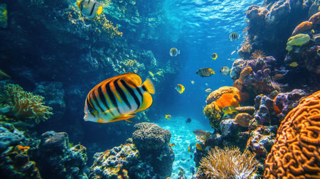 Explore a breathtaking underwater scene filled with vibrant tropical fish swimming through stunning coral reefs, showcasing the beauty and diversity of marine life in serene ocean waters.