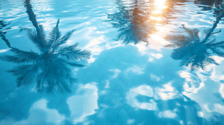 reflection of palm trees on a still swimming pool surface, created with generative ai