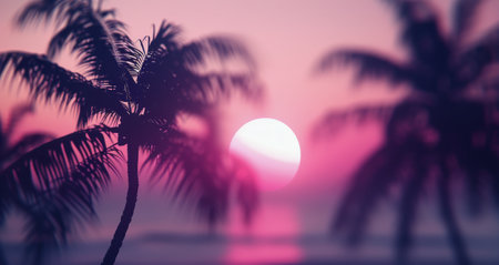 Vibrant palm tree silhouettes against a glowing sunset backdrop