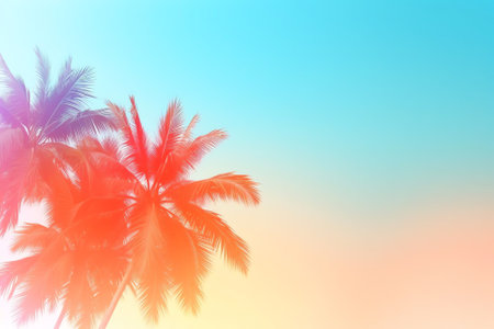 Blurred colorful coconut palm trees frame Pastel retro color Gradient light colourful nature background