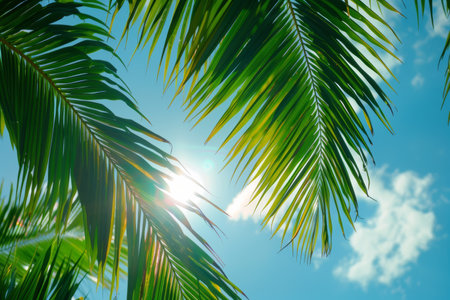 Summer sunlight filtering through tropical palm leaves