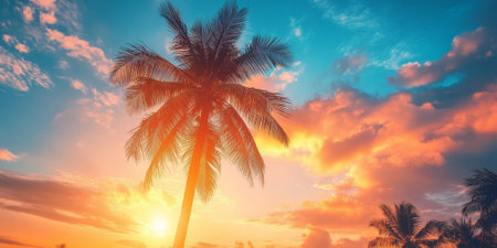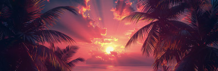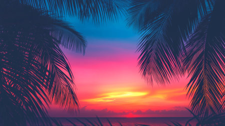 Bright tropical sunset background with palm trees and vibrant colors, perfect for summer-themed projects