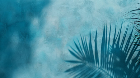 Colorful wall with shadow of palm leaves. Abstract background and texture.