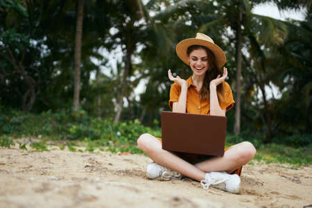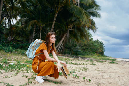 Woman tourists in sunglasses and jungle hat island travel fresh air
