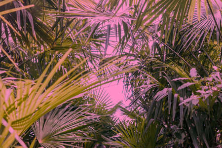 Thin purple palm leaves. Fashion trend of the background pattern.