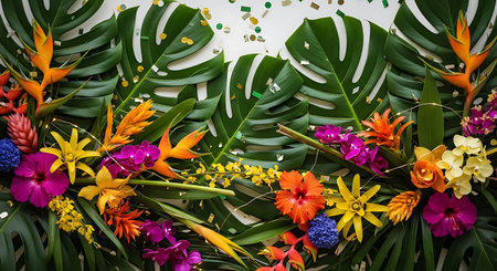 A stunning display of tropical flowers and lush greenery, showcasing vibrant colors and textures perfect for decor, design inspiration, and nature lovers.