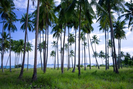 Coconut plantation with blue sky