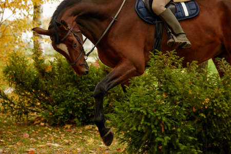 sportsman rides on horse training outdoors