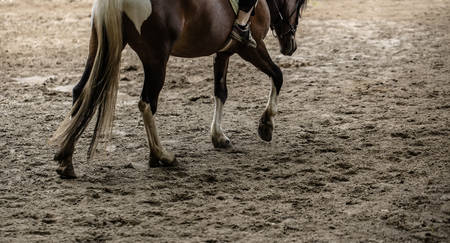 Detail of horse hooves from showjumping competition.