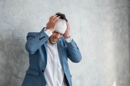 asian businessman sad worry tired and headache, stress at workplace, feeling ill, finance problem and lost job, close up shot background