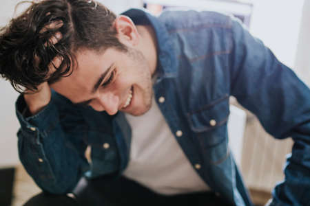 A young man sitting with his hands close to his face and felt sorry for despair in life.