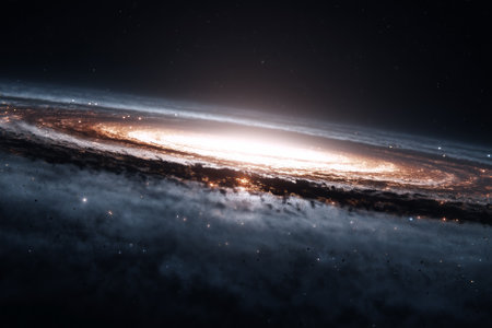 Formation of a huge spiral galaxy and stars and an interstellar nebula. AI-generated item