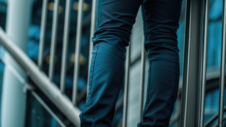 A fashionable man wearing a trendy chain clipped to his trousers, creating a modern streetwear vibe.