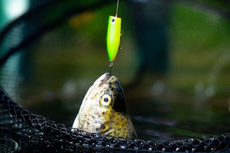 Trout On the hook. Fishing.
