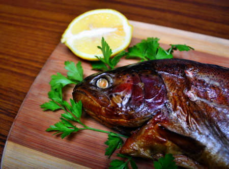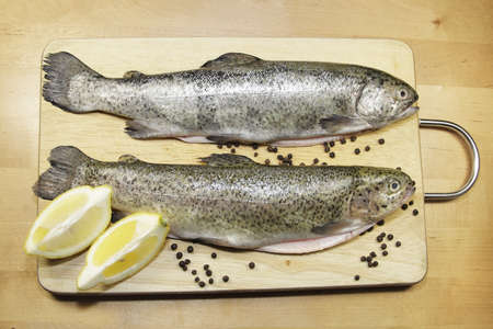 fresh, Trout fishing, river trout,rainbow rout, on old white old board