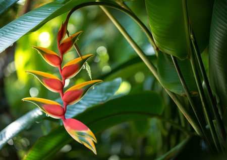 Flower Heliconia humilis genus of flowering plants in the family Heliconiaceae. Amber mountain, madagascar wilderness